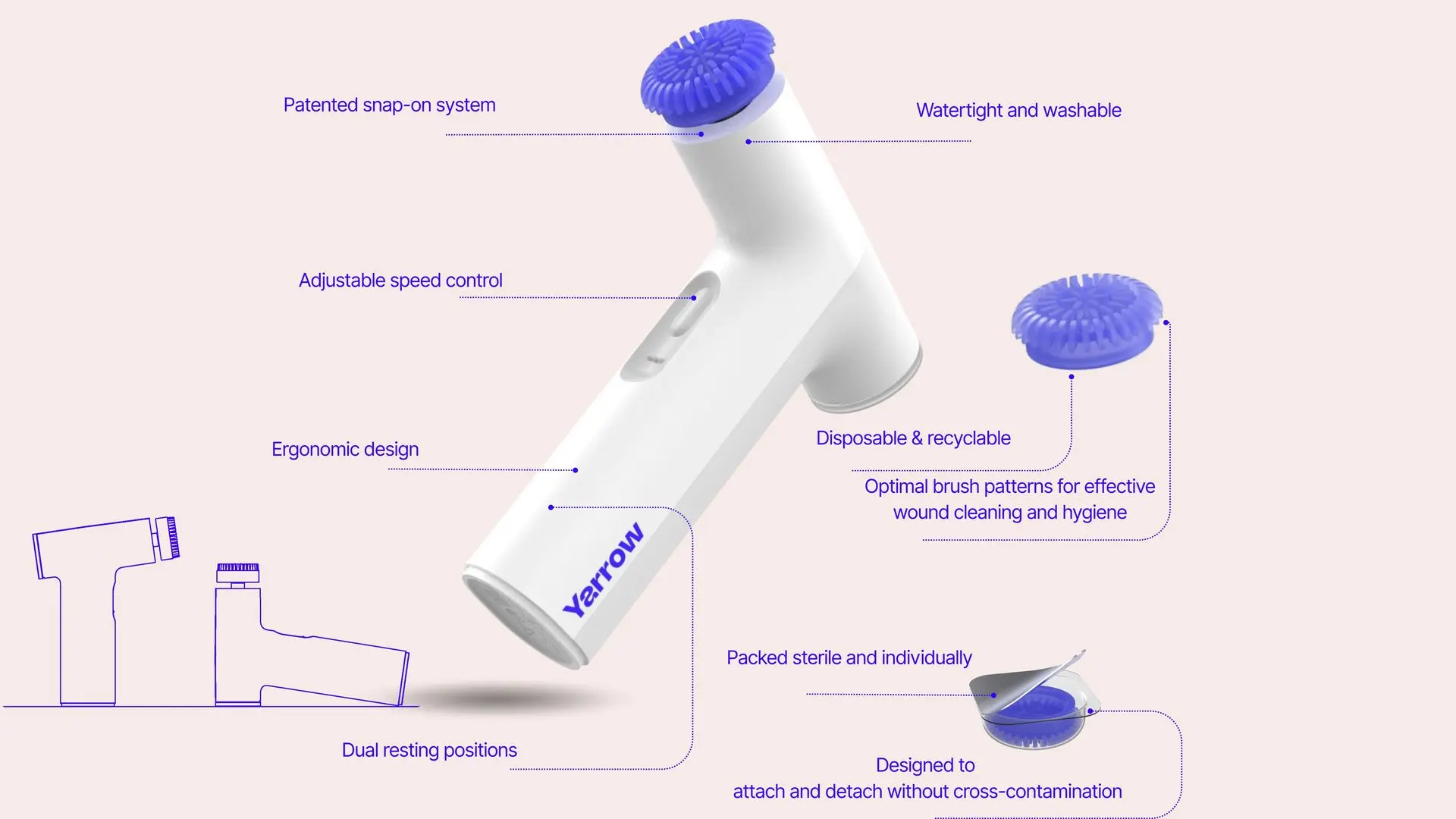 The Yarrow Woundbrush combines portability with advanced cleaning technology